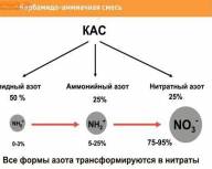 За счет содержание в КАС трех форм азота, обеспечивается быстрый рост и стабильная подкормка растений азотом. Нитратный азот, благодаря своей подвижности в почве, усваивается в первую очередь. Аммиачная форма азота менее подвижна в следствии чего она дольше задерживается в почве, не подвержена вымыванию и оседанию и дает возможность растениям на весь период вегетации обогащаться аммиачной формой азота.