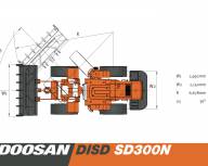 Новий фронтальний навантажувач Doosan DISD SD300N відноситься до техніки середнього класу: вага - 17 000 кг, ємність ковша - 3 м3, і має унікальну маневреність для машин з аналогічними параметрами. Шарнірно-зчленована рама забезпечує оптимальний радіус повороту - 40 °.