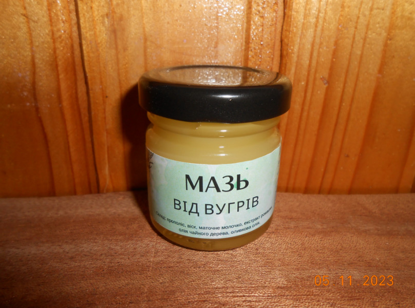 Склад: прополіс, віск, маточне молочко, екстракт ромашки, олія чайного дерева, оливкова олія. Показання: для профілактики та лікування вугрів. Спосіб застосування: наносити на ніч на очищену суху шкіру. Ціна: 147 грн.