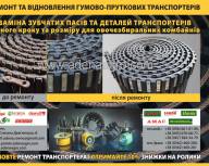 Заміна транспортерних пасів різного кроку та профіля на гумово-пруткових транспортерах для картоплезбиральної техніки, бурякозбиральної техніки, техніки для збору цибулі, моркви та ін.