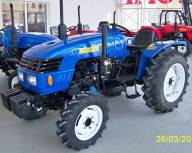 Полноприводный минитрактор с дизельным двигателем водяного охлаждения, 35 л.с., с гидроусилителем руля. Ширина передней/задней колеи, мм 1200/1100,1200,1300,1400,1500; Дорожный просвет, мм - 405;