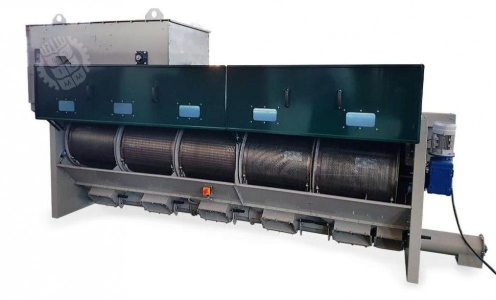 - очисно-калібрувального блоку з обертовим барабаном, що видаляє дрібні і великі домішки і розділяє зерно в залежності від встановлених решіт.