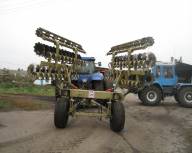 Ширина захвата - 6,3 м, количество дисков - 44 шт., диаметр дисков - 520 мм, рабочая скорость - 12..20 км/час, затраты топлива - 4 л/га, продуктивность - 7,4..13,02 га/ч, агрег. с тракт. - Т-150, общий вес - 4200 кг.