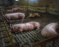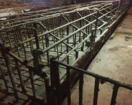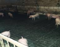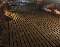 На ферме бетонные щелевые полы для поросят и свиноматок.