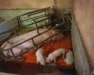 Есть родильные боксы (как на фото), а так же станки для осеменения.