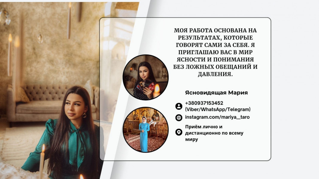 Я не даю пустых обещаний, не пугаю страшными историями и не навязываю услуги. Я действую. Моя практика – это конкретные результаты, которые говорят сами за себя.