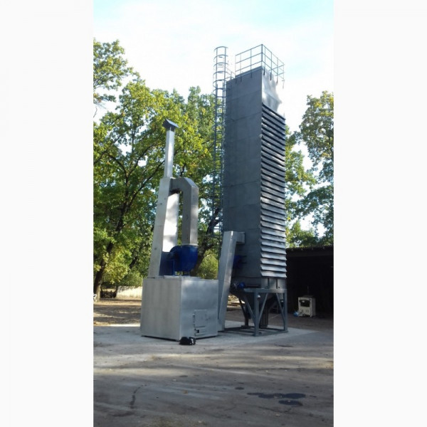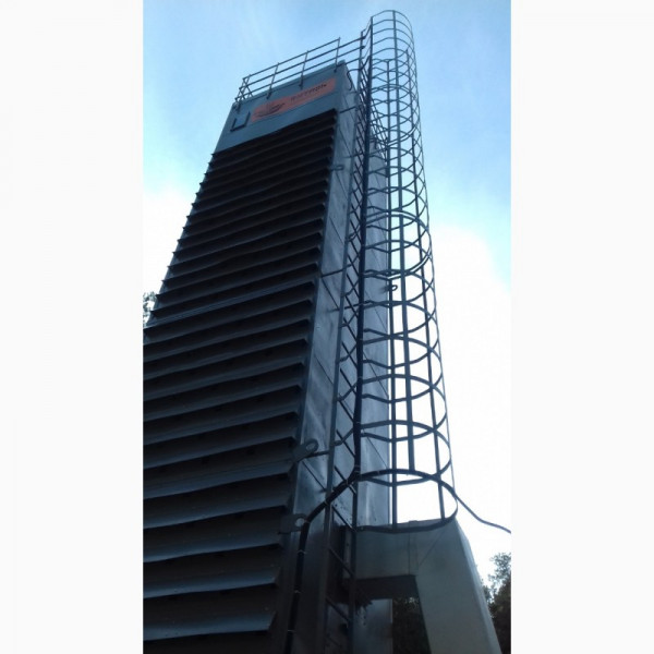 - БЕЗПЕЧНА. Ретельно продумана конструкція, яка не передбачає затори, через які відбуваються загоряння. По всій сушарці всередині встановлені лопатки, які постійно перемішують зерно. Встановлено 2 вентилятора, які доповнюються сіточками від каменів, птахів. Поручні зверху і на сходах для безпеки