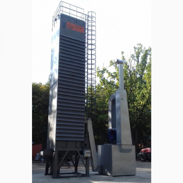 - БЕЗПЕЧНА. Ретельно продумана конструкція, яка не передбачає затори, через які відбуваються загоряння. По всій сушарці всередині встановлені лопатки, які постійно перемішують зерно. Встановлено 2 вентилятора, які доповнюються сіточками від каменів, птахів. Поручні зверху і на сходах для безпеки