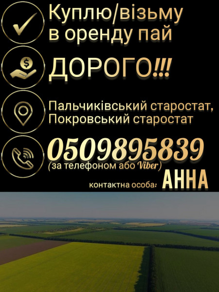 Куплю/візьму в оренду пай, дорого, Полтавська область