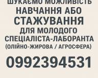 Шукаємо можливість навчання або стажування для молодого спеціаліста-лаборанта