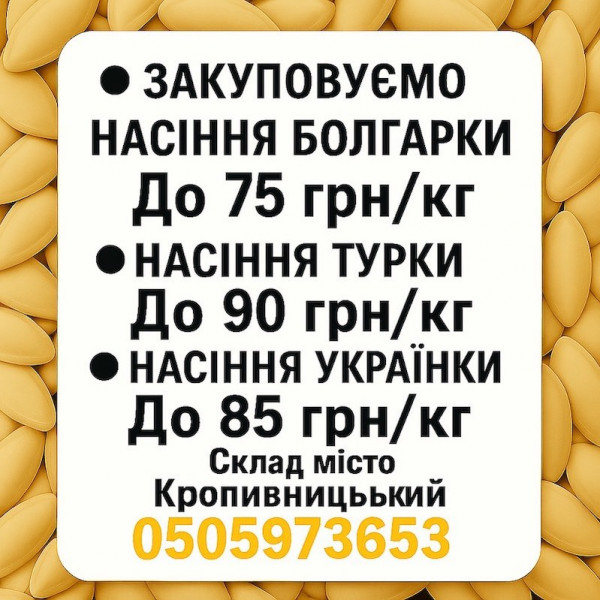 Приймаємо насіння здійснюється на складі в місті Кропивницький.