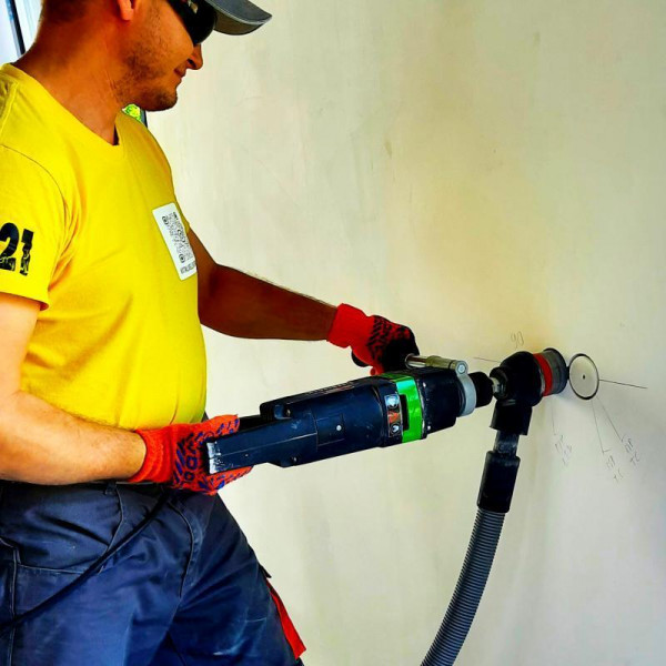 Сверление подрозетников в бетонной, кирпичной стене без пыли.