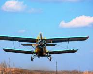 Розсів аміачної селітри та інших сипучих міндобрив за допомогою сільгосп літаків Ан-2 та вертольотів Мі-2.