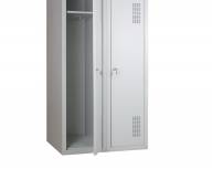 Каждая секция (ячейка) шкафа оснащена индивидуальным цилиндрическим замком фирмы ЕUROLOCKS, полочкой, перекладиной для вешалок и крючком;