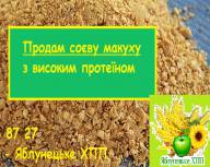 Компанія ТОВ «Яблунецьке ХПП» хоче запропонувати Вам соєву макуху власного виробництва. Макуха виробляється з високопротеїнової сої, має гарний колір та показники відповідні ДСТУ, мушлями або дроблений, протеін 39-41 на сире, жир 5,5%, уреаза 0,15.