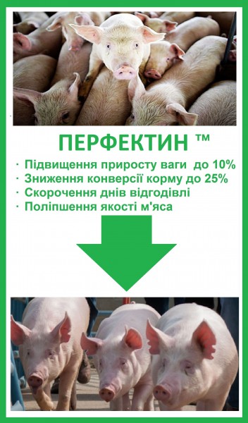 ПЕРФЕКТІН - це унікальний препарат для підвищення приросту ваги і зменшення конверсії корму без побічних ефектів: