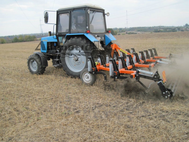 Культиваторы укомплектованы пружинными стойками, которые имеют уникальные вибрационные свойства, что улучшает измельчение (распушивание) почвы и уменьшает тягловое сопротивление и самоочистку. Использование пружинных рабочих органов даёт возможность агрегату эфективно работать в разных почвенных условиях. Простота и надёжность конструкции обеспечивает безперебойность роботы на протяжении многих лет. Продуктивность агрегата 3,04..4,56га/год. Количество стоёк 15шт. Расстояние между стойками 29см. Необходимая мощность трактора 80к.с.
