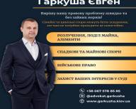 Вітаю! Мене звати Євген Гаркуша, і я – адвокат із понад 15-річним досвідом у сфері сімейного, цивільного та військового права.