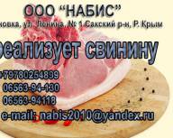 Сельскохозяйственное предприятие ООО Набис, по адресу с. Ивановка, ул. Ленина, № 1, Сакского района, Р Крым, реализует недорогое мясо свинины в живом весе, охлажденную в тушах и полутушах.