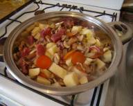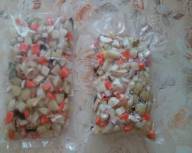 Состав: куриное филе, шампиньоны, картофель, лук, морковь.